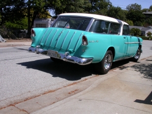 HERES A 55 NOMAD THAT HAD BEEN WITH THE SAME OWNER SINCE 1987 & ALWAYS IN THE GARAGE, I BOUGHT THE CAR WITH INTENTIONS OF KEEPING IT, TWO DAYS AFTER PURCHASING IT WAS ON A FLATBED HAULER & WHILE BEING UNLOADED ROLLED OFF THE BED , THE IMMEDIATE REACTION FROM THE OWNER OF THE COMPANY A FRIEND (OR SO I THOUGHT) OF 35YRS WAS SORRY WE ARE NOT RESPONSIBLE YOU,RE ON YOU,RE OWN , BLAME HAS YET TO BE DECIDED & I,M SURE LAWYERS WILL EVENTUALLY BE INVOLVED & A 35YR RELATIONSHIP WILL BE OVER, IN THE MEANTIME JUST LOOKING AT WHAT WAS JUST A FEW DAYS AGO A VERY NICE DRIVER SADDENS ME TO THE POINT THAT I JUST WANT IT GONE , DAMAGE EXTENDS TO DRIVER SIDE DOOR, DOOR POST FENDER & PASS SIDE REAR QUARTER I PROBABLLY HAVE ANOTHER FENDER IF SO IT WILL COME WITH THE CAR.