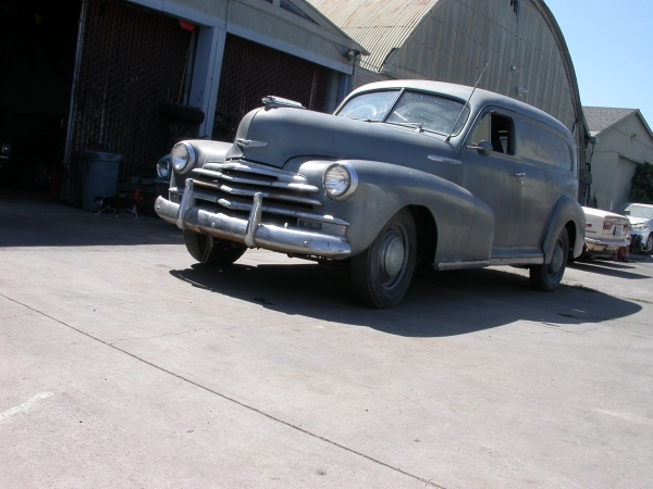 HERES A BONE STOCK 1947 CHEVY SEDAN DELIVERY WITH A GOOD RUNNING 6 CYLINDER. ENGINE MATED TO A 3 SPEED COLUMN SHIFT MANUAL TRANSMISSION , REBUILT CARB , NEW FUEL PUMP FUEL SYSTEM FLUSHED ,NEW MASTER CYLINDER AND RADIAL TYRES FITTED , VERY NICE BLACK VINYL INTERIOR STRAIGHT BODY WITH NO SIGNS OF PREVIOUS ACCIDENT. DAMAGE , PERFECT ADVERTISEMENT FOR YOURE, SMALL BUSINESS .
